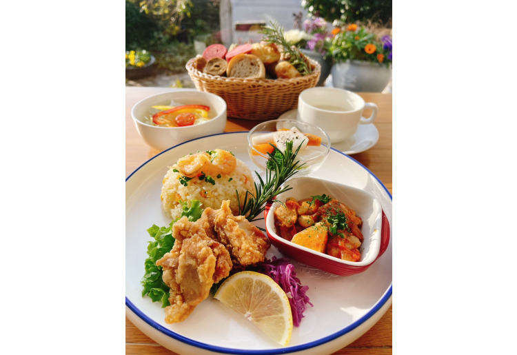 2月は「海老ピラフと大山ハーブ鶏の唐揚げの彩りプレート」